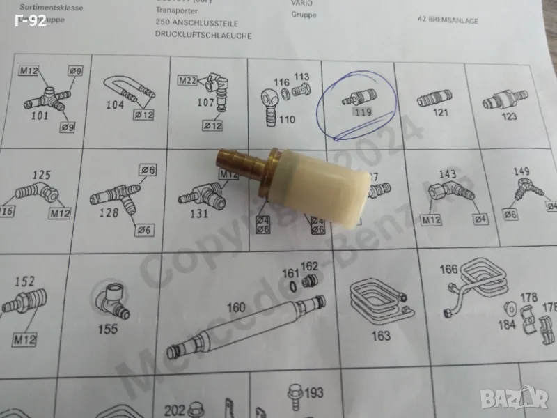 **Прав конектор за пневматична система**
