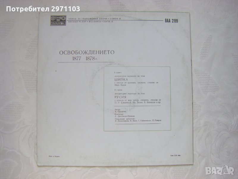 Грамофонна плоча - ВАА 2199 - Освобождението 1877-1878 година: литературни вариации, изпълняват Виолета Бахчеванова, Кирил Янев, Георги Гайтаников и Петър Петров