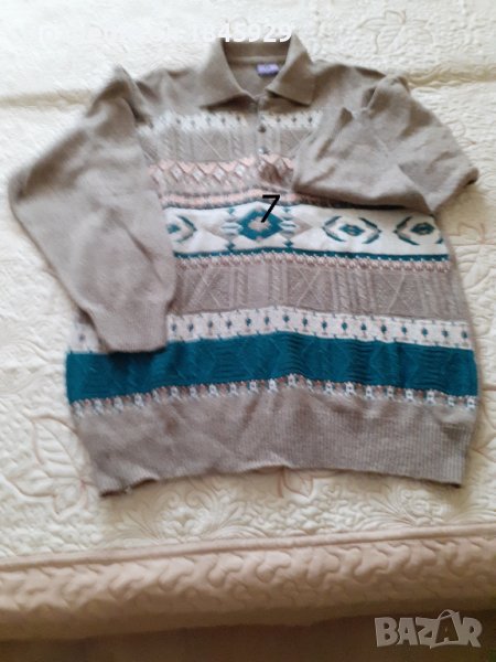 1,2,3,4,5,6 и 7-Мъжки вълнени пуловери с дължина- 70-72 см.Гръдна обиколка-110 см. Ръкав-65 см.Отговарят за височина 182 см.Запазени са. Цена- 5 евро за брой.