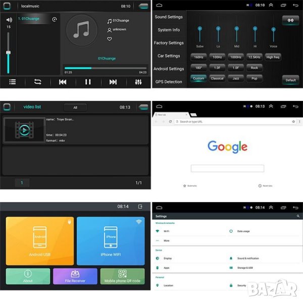 Wi-Fi интернет, новият Андроид, Bluetooth за разговори и музика, USB входове за флашка и зареждане на устройства, GPS навигация, теми за вид на меню, еквалайзер за настройка на звука, бърза реална RAM памет от ново поколение. ТОП дизайн!