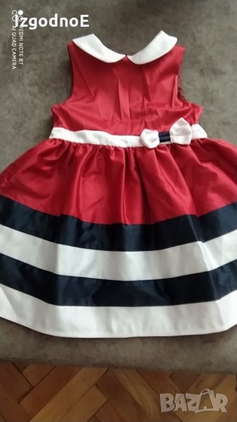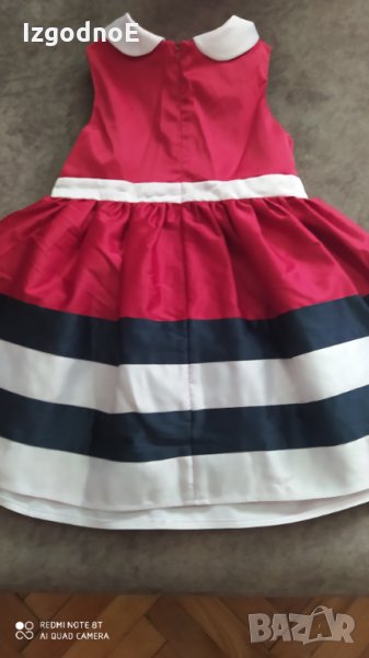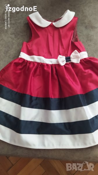 Разкошна празнична рокля. Слагана 1 път. Има много леко оцветяване на коланчето - след пране червеното пусна боя и колана стана много бледо розов. Прави впечатление на мен, защото знам как беше, иначе едва ли някой би забелязал. Равномерно се е оцветило. Купувана за 50лв. Качествена многопластова.