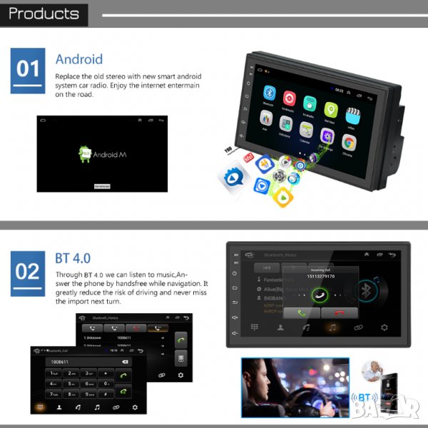 Wi-Fi интернет, новият Андроид, Bluetooth за разговори и музика, USB входове за флашка и зареждане на устройства, GPS навигация, теми за вид на меню, еквалайзер за настройка на звука, бърза реална RAM памет от ново поколение. ТОП дизайн!