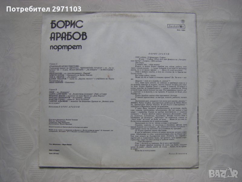 Грамофонна плоча - ВАА 11864 - Портрет на Борис Арабов