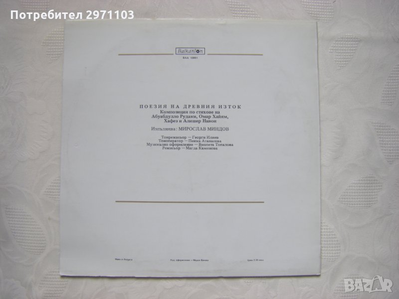 Грамофонна плоча - ВАА 10991 - Поезия на Древния Изток: композиция по стихове на Абу Абдаллах Рудаки, Омар Хайям, Хафез и Алишер Навои
