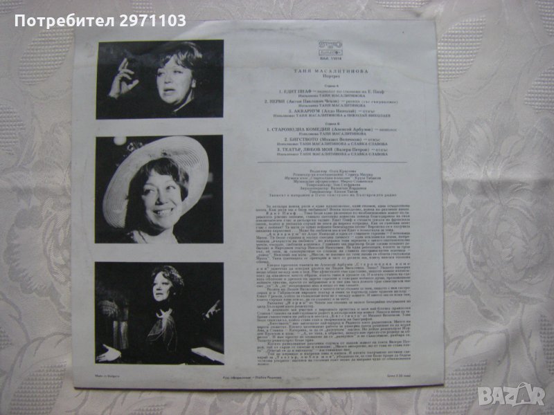 Грамофонна плоча - ВАА 11014 - Портрет на Таня Масалитинова