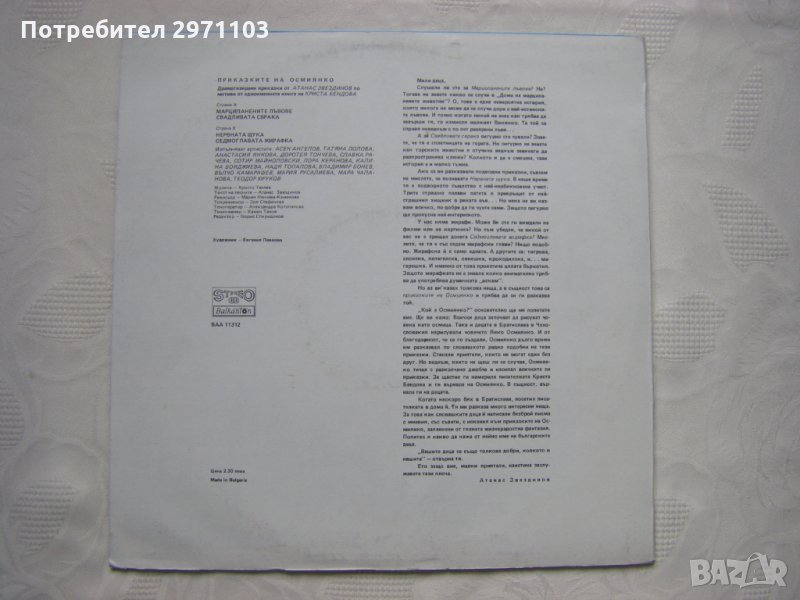 Грамофонна плоча - ВАА 11312 - Криста Бендова. Приказките на Осмиянко