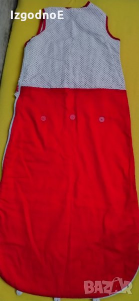 Много интересен модел, отзад има копчета о може да се ползва от малко бебе, а след като детенцето порасне, да се ползва в целата дължина