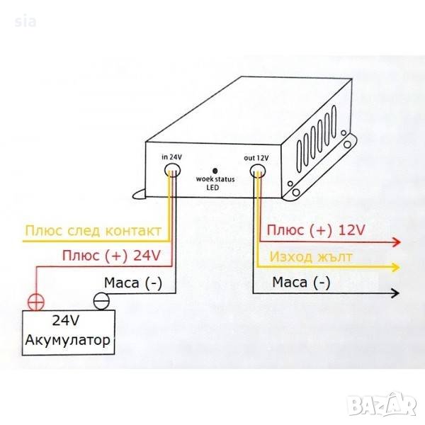 Инвертора се използва за преобразуване на напрежение от 24V на 12V.