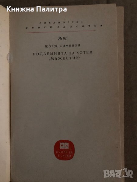 Подземията на хотел "Мажестик"- Жорж Сименон → Обява 35300174