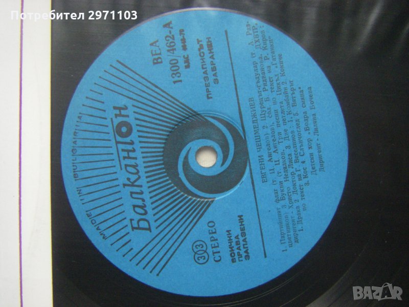 Песни / Евгени Чешмеджиев. Партийният флаг / текст Цв. Ангелов. Щурец-гъдулар / текст Ас. Разцветников. Букви / текст Цв. Ангелов; солистка Б. Ридванова изп. Детски хор при Българската телевизия и радио, диригент Хр. Недялков. 3 песни по текст на Р. Киров: Драка; Доктор Лиса; Две петлета. Цикъл "Гатанки" по текст на Г. Веселинов: Комбайн; Кокиче; Кос; Слънчоглед; Вятърът / изп. хор "Бодра смяна", диригент Л. Бочева. Приказка за листенцето / текст Ив. Голев; изп. Д. Иванов и П. Русева; съпровожда оркестър "Симфониета" на Българска телевизия и радио, диригент В. Казанджиев