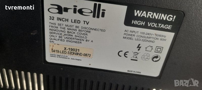 mainboard tp.ms3663s.pb818 Arielli LED 32DN9ND Борда е гарантирано работещ Демонтиран от телевизор Arielli модел 32DN9ND със счупен дисплей T320XVN02.G тествана от нашия техник