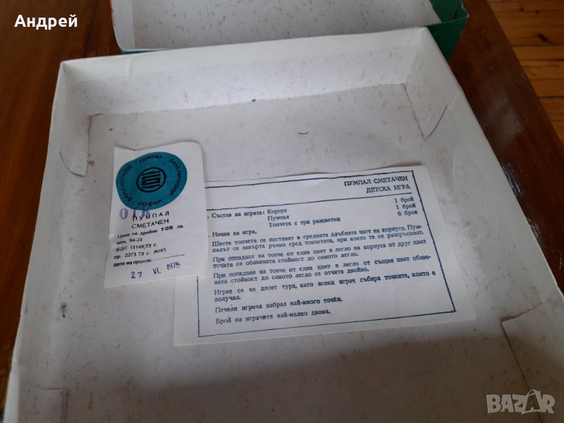 Стара детска игра Пумпал Сметало, снимка 1 - Други ценни предмети - 35306405 Стара детска игра Пумпал Сметало, снимка 2 - Други ценни предмети - 35306405 Стара детска игра Пумпал Сметало, снимка 3 - Други ценни предмети - 35306405 Стара детска игра Пумпал Сметало, снимка 4 - Други ценни предмети - 35306405 Стара детска игра Пумпал Сметало, снимка 5 - Други ценни предмети - 35306405 Стара детска игра Пумпал Сметало, снимка 6 - Други ценни предмети - 35306405 1/6