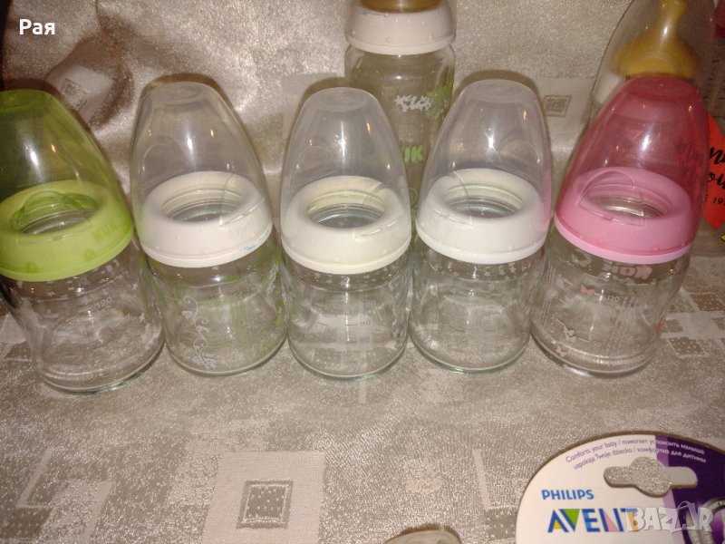 20 броя Nuk 8 броя стъклени и 11 броя пластмасови и 1 брой Avent