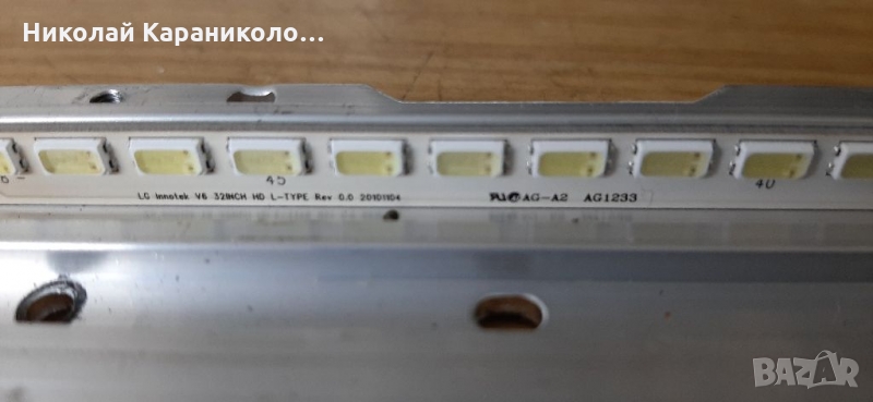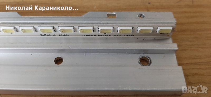 Лед посветка 3660L-0386A / LG Innotek v6 32 inch HD L-type rev 0.0 и LG innotek v6 32 inch HD R-tipe/ 2 ленти по 48 диода/3 групи х 16 диода/ х 350мм,със алумин.радиатор-705мм.Цена общо 15 евро.