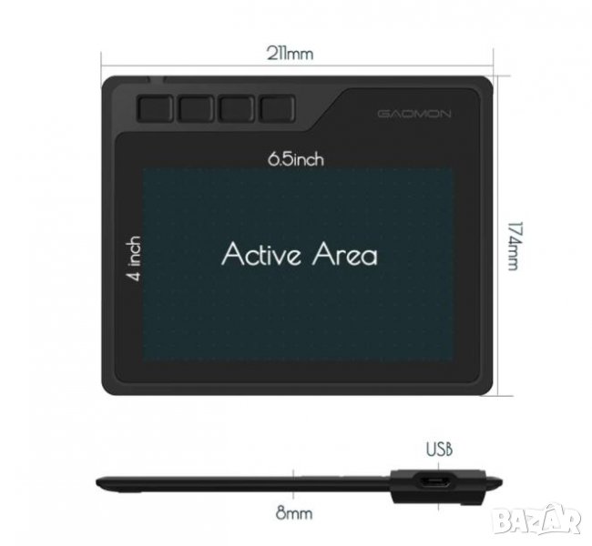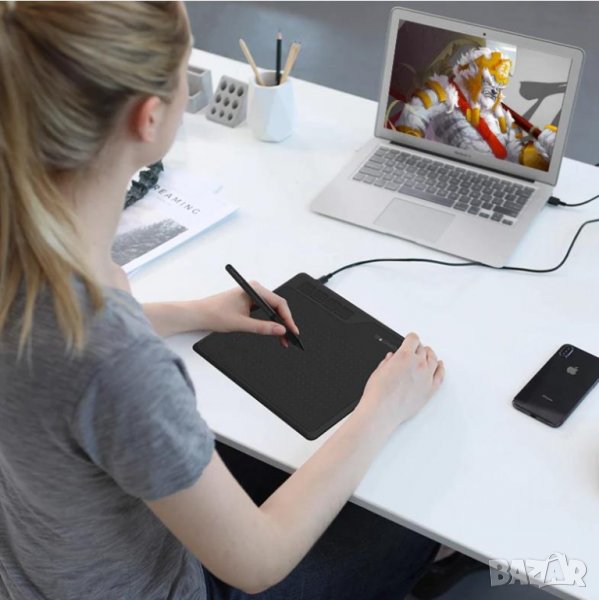 Графичният таблет има възможност за свързване със смартфони и таблети с версия на Андроид 6 и по-висока. За целта са приложени преходници към комплекта!