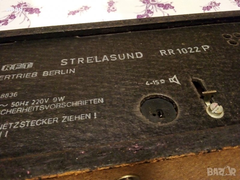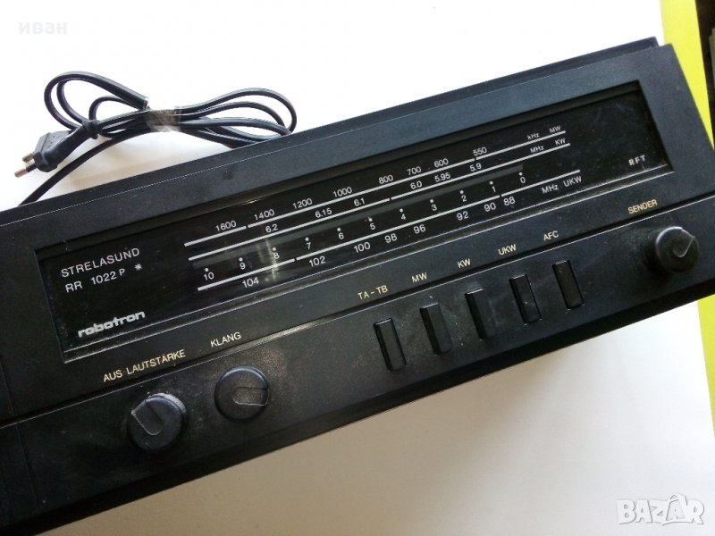 Старо радио "Robotron Strelasund RR1022" - 1984 г.Добро състояние,работи,хваща няколко станции.Стрелката на скалата е паднала /не съм го отварял/,липсват две крачета.