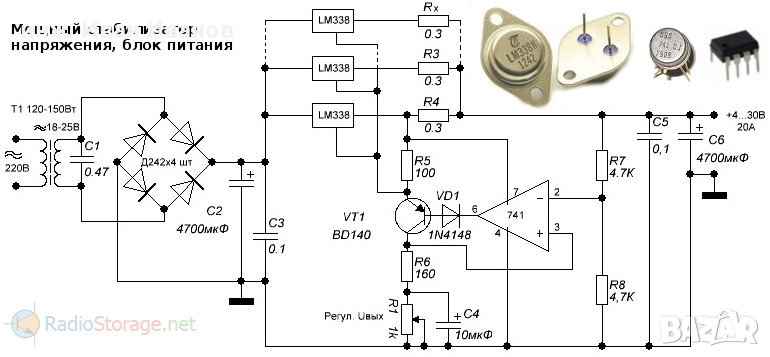 Коментар:Стабилизаторите LM338Т имат същото подреждане на изводите като популярният LM317Т.