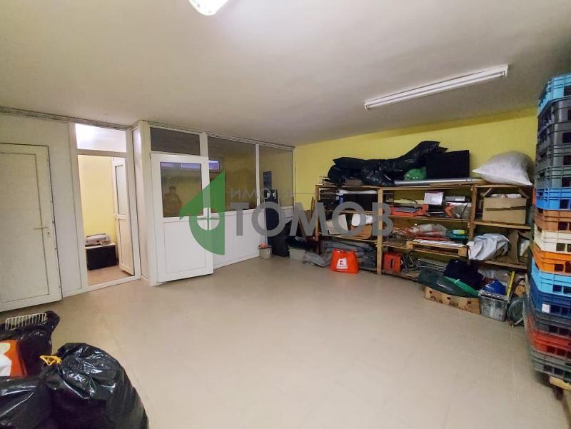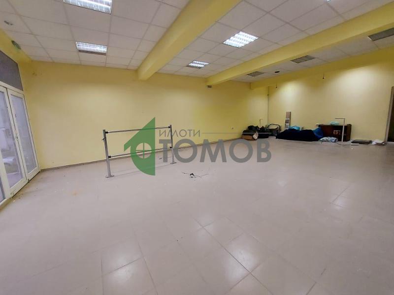 Търговско помещение: достъпът се осъществява посредством стълби (налична е и рампа за инвалиди), има централен и заден вход, подовата настилка е теракота, дограмата е PVC, таванът е окачен, налично е видеонаблюдение и озвучение, сервизна част.