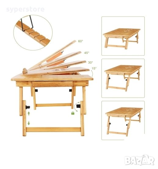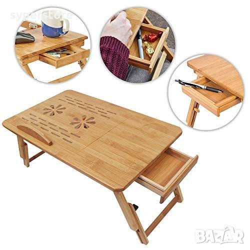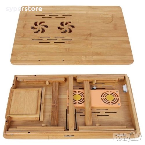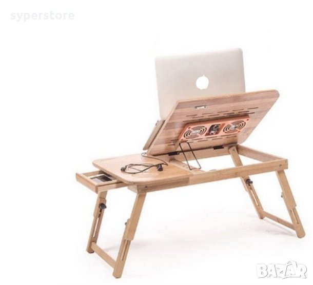 Бамбуковата масичка за лаптоп, може да се използва като мини бюро за четене, поднос за закуска, маса за оцветяване, работно мини бюро в леглото, на пода, на дивана, в креслото, в кола и при пътуване.Тази масичка е чудесен избор за тези, които обичат да закусват в леглото. Тя ще повдигне устройството ви до нивото на очите и ще ви помогне да работите комфортно, спестявайки ви болки във врата или гърба.Накланяща се, сгъваема, стабилна, много качествена и лесна за съхранение. Нейната елегентна изработка, ви осигурява уют и комфорт. С преграда в долната часта на масичката се предотвратява плъзване на лаптопа ви, когато плота е наклонен надолу. Може да регулирате наклона, под 5 различни ъгъла. Снабдена е с тих вентилатор за по-добро разсейване на топлината.Тежи само 2.25 кг и се сгъва лесно, така че да вземете това удобство навсякъде, къдете би ви било необходимо мини бюро.