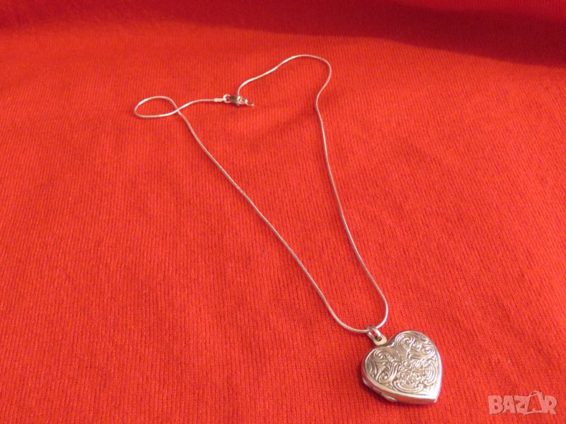 Сребърно синджирче със старинна сребърна муска, отварящо се сърце - кутийка с тайник, накит, амулет, може да напишете молитва и да ви пази и закриля .