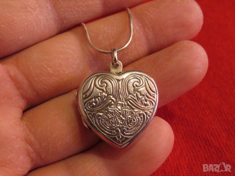 Сребърно синджирче със старинна сребърна муска, отварящо се сърце с тайник, накит, амулет сребро