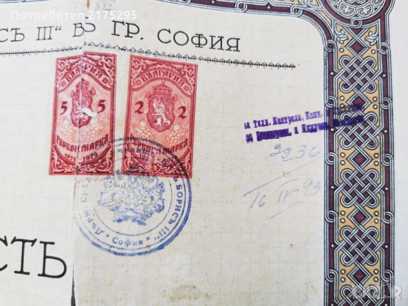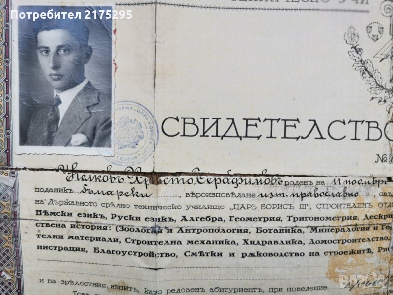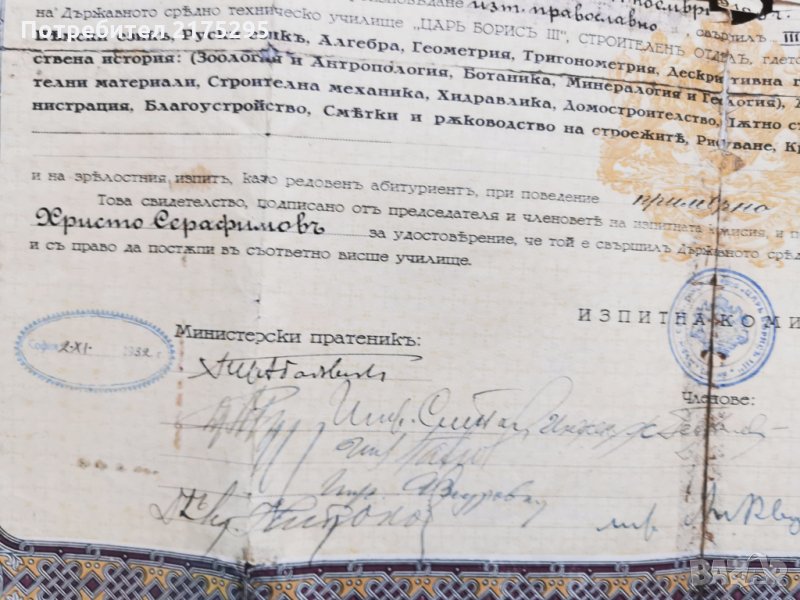 Свидетелство за зрелост 0т 1932 г. → Обява 35336235