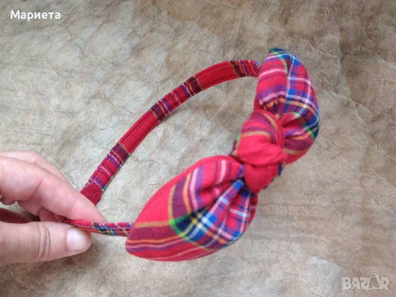 Диадема червено каре с панделка Ръчна Изработка Аксесоари за коса Диадема Шотландско каре → Обява 35337829