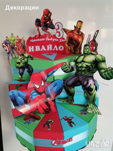 Изработка на картонени торти по индивидуален проект с любими анимационни герои. Цена за едно парче 1лв.с включена цялостна украса.Има варианти за пълнеж може да видите повече модели на фейсбук страницата Картонените торти на Роси.Изработваме и украси за всякакъв повод като рожден ден, Юбилей, кръщене, абитуриентски бал и други.Цените са бюджетни спрямо вашите предпочитания.