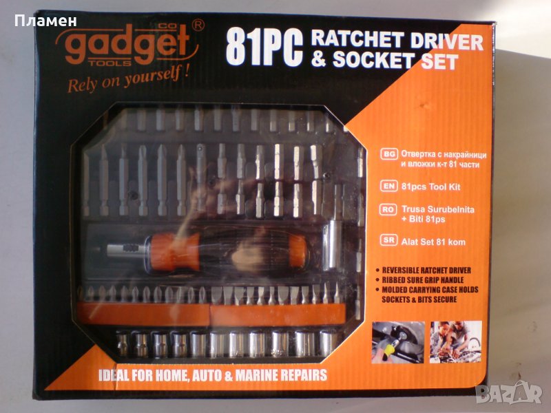 многофункционална отверка и накрайцити към нея. Всичко необходимо за завиването