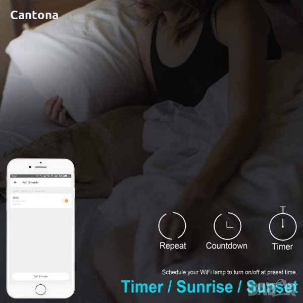 - Автоматично насрочете интелигентния светлинен адаптер за включване и изключване на крушки според нуждите от функцията на таймера, това ви дава спокойствие, че никога няма да забравите да изключите осветлението.