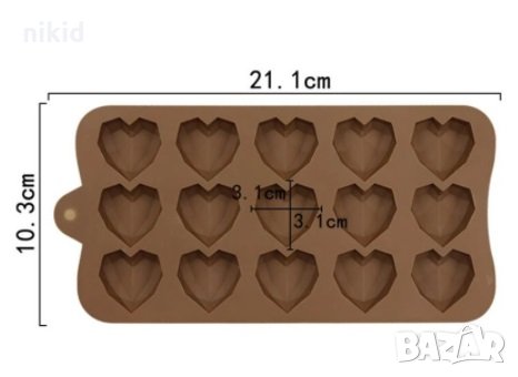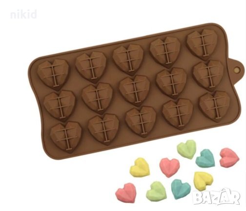 15 малки диамантени сърца сърце диамантено силиконов молд форма бонбони шоколад украса декор торта → Обява 35341454