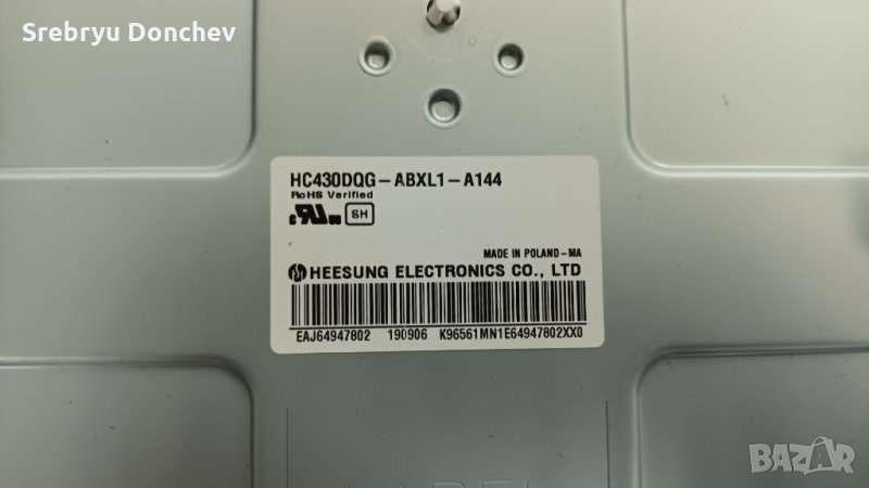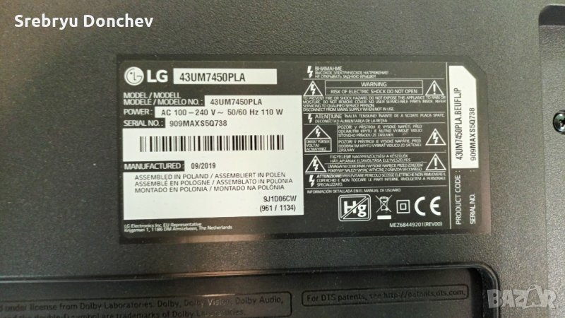 LG 43UM7450PLA със счупен екран- EAX68304101(1.7) EAY65170101 LGP43T-19U1/EAX68253604(1.0) → Обява 35343592