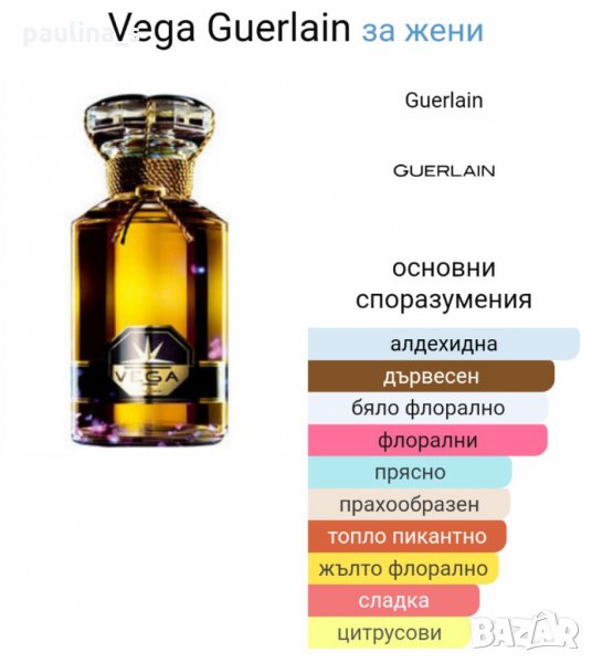 ретро парфюм със запазени качества и интензивност. Аромат от Старата школа! Съхраняван е на тъмно с малка тапичка в стъклено шише, пълен е почти до горе. Без бартери!Има антикварна стойност и цена! Мисля, че е от серията на "Vega" Guerlain Baccarat 1936г. Определям го като флорален - шипров old school - алдехиден, има изключителна трайност - 12ч само от докосване, при мен. В шлейфа алдехидите са изумителни, имам доста парфюми и на този етап този ми е най-любим, но не е мой. Моля, разгледайте и другите обяви и последвайте профила. При покупка за над 170лв, поемам част от доставката до офис на Еконт и правя отстъпка от общата цена, така цената за доставката не изглежда твърде непосилна. Приятно разглеждане. Продажбата е с благотворителна цел, цената не се коментира по никакъв начин. Благодаря за вниманието и отделеното време 🙂