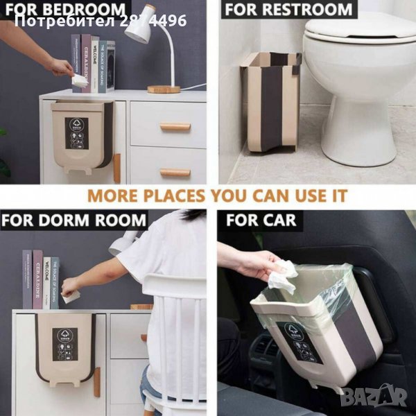 Практичен сгъваем контейнер за отпадъци за домакински шкаф