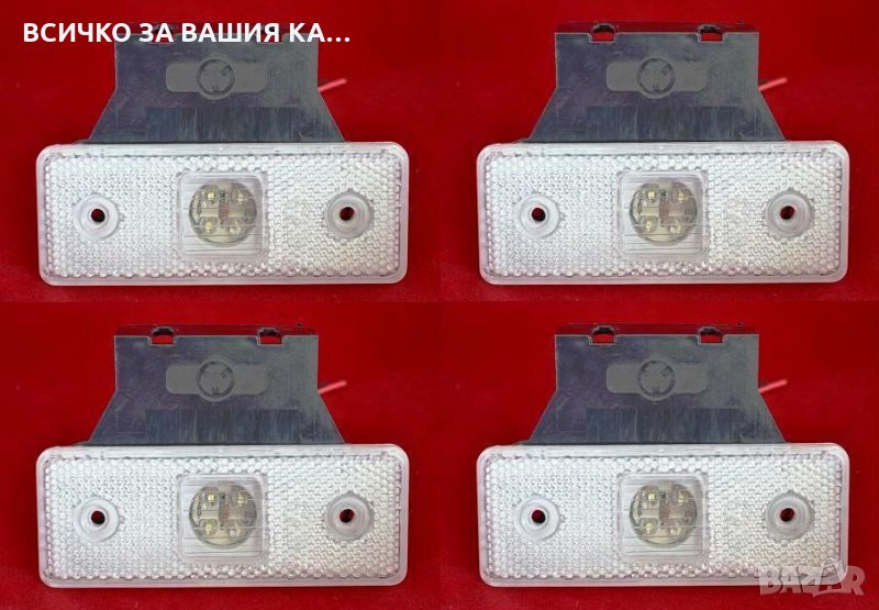 1бр. Диодни Лед LED габарити светлини с 4 диода , 12-24V , БЕЛИ