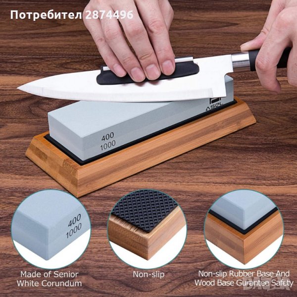 При заточване, дръжте острието под ъгъл 10-20 градуса спрямо камъка.