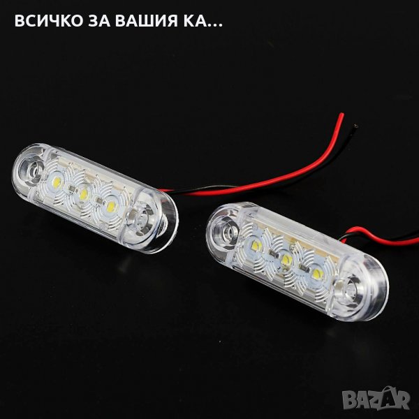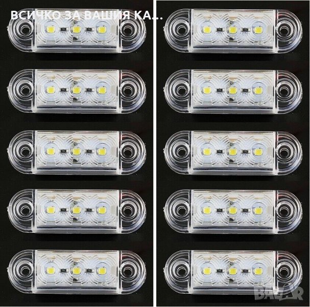 1бр. Мини ЛЕД LED габарити овал с 3 диода 12-24V , БЕЛИ → Обява 35346619