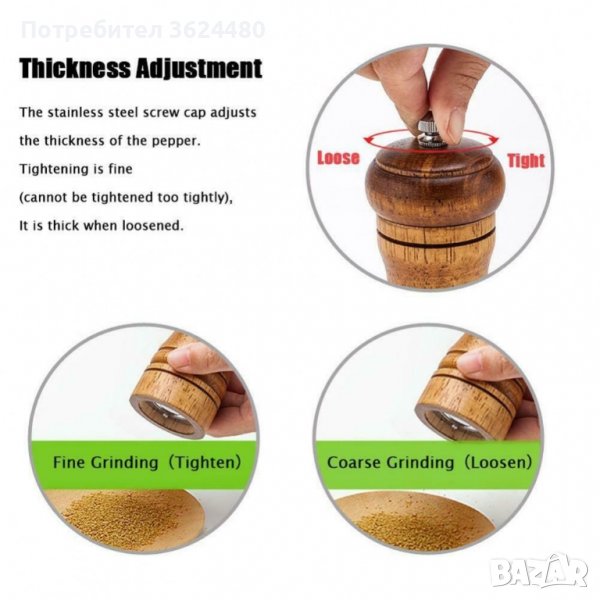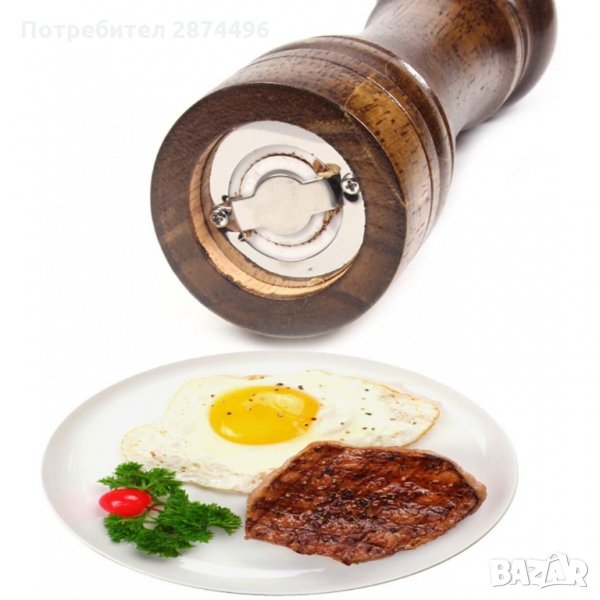 Мелничка за черен пипер и други подправки. Елегантен аксесоар, който ще придаде изисканост на всяка маса. Изработена е от висококачествен дървен материал. Предлага се в два размера - с височина 314,5 и 22 см.