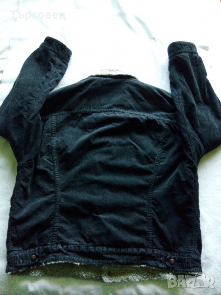 Якето е синьо на цвят, велурено с метални копчета тип "тик так". Разполага с 2 предни джоба. Подходящо е за ранна пролет и късна есен. Има малка цепка на левия ръкав около 1 см. и цената е съобразена с това.