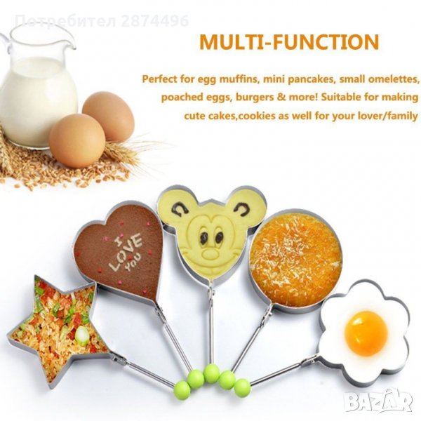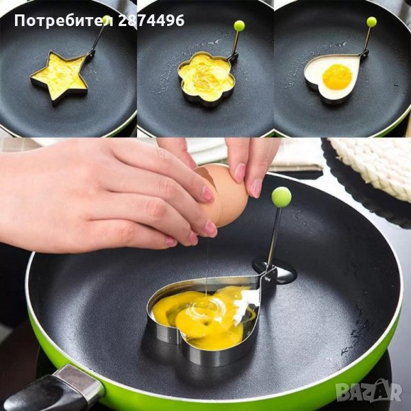 Метална формичка за приготяне на пържени яйца,омлет и забавни сандвичи. Приготви пържени яйца в интересна форма на сърце, звезда или цвете.