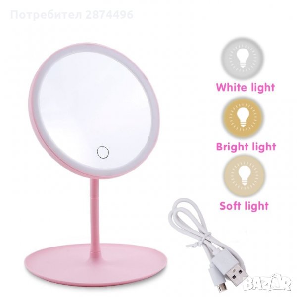 Настолно кръгло огледало с 3 режима на светене - 1 бр.