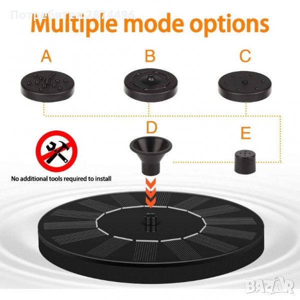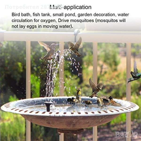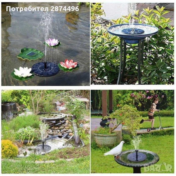 Изцяло съобразен с природата продукт, състоящ се от кръгъл соларен панел и захранвана автоматично от него помпичка посредством слънчевата енергия. Към помпичката се прикрепя накрайник, с помощта на който водата се разпръсква под различна форма и с различна височина на струята (между 30 и 60 см.). В комплекта са включени три модела накрайници и две приставки-удължители за накрайниците за разпръскване на струята вода.