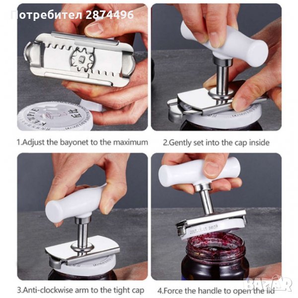 Отварачката е от неръждаема стомана и е подходяща за всеки буркан.