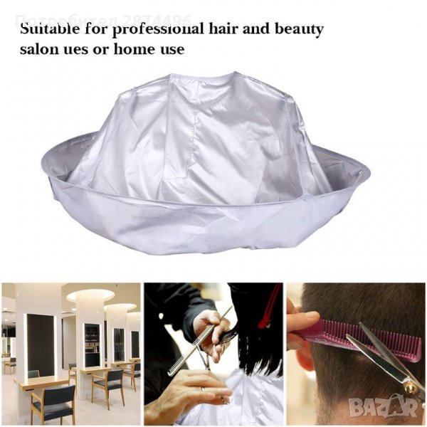 Иновативно решение при подстригване или боядисване на косата в домашни условия. Пелерината ви обгръща изцяло, а повдигнатите краища предпазват вас и пространството около вас от излишните косми и пръски боя. Отрязаната коса остава в пелерината и след това може лесно да се изхвърли. Удобна и практична, лесно се почиства и съхранява. Закопчава се с велкро лента.