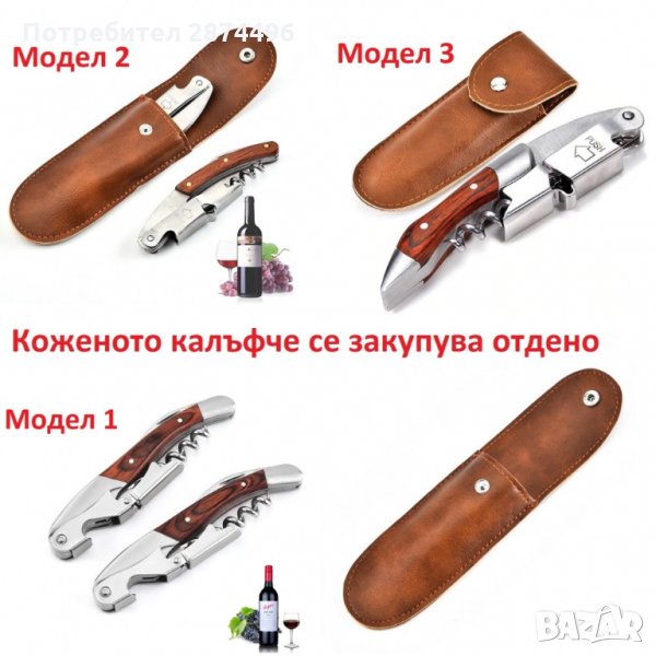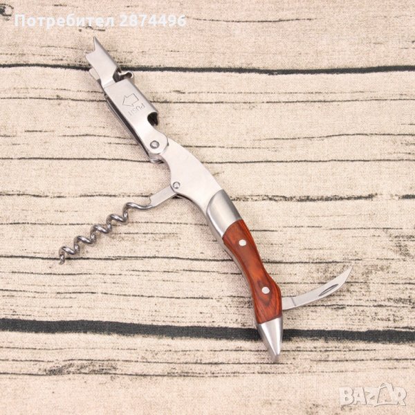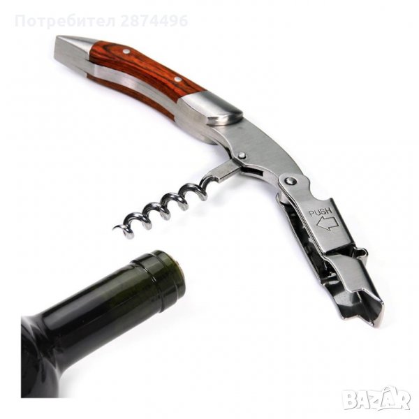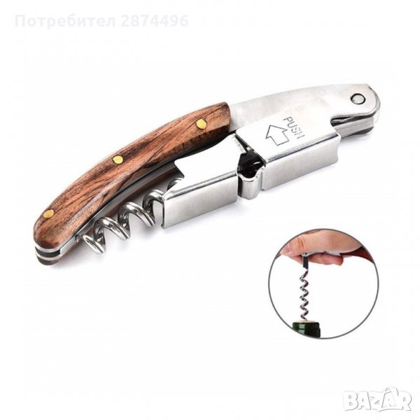 Тирбушон с двоен лост и дървена дръжка