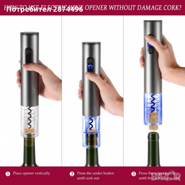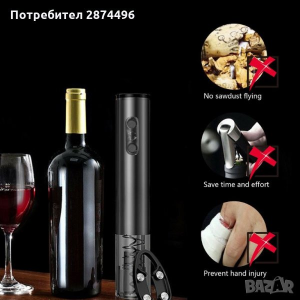 Електрически тирбушон за отваряне на бутилки вино - 1бр.