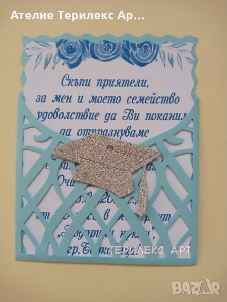 Красиви покани за абитуриентски бал с шапка → Обява 35349197