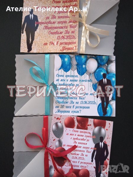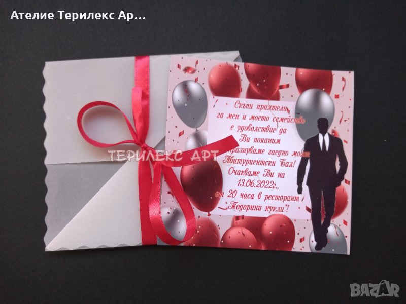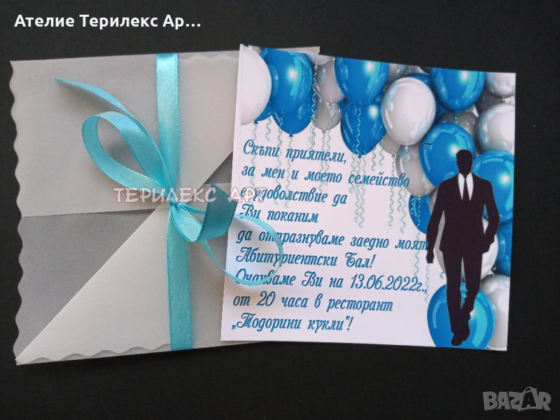 Стилни покани с плик за абитуриентски бал за момче → Обява 35349335