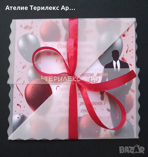 Ваше желание,може да се добави надпис според повода.Към всяка една покана се