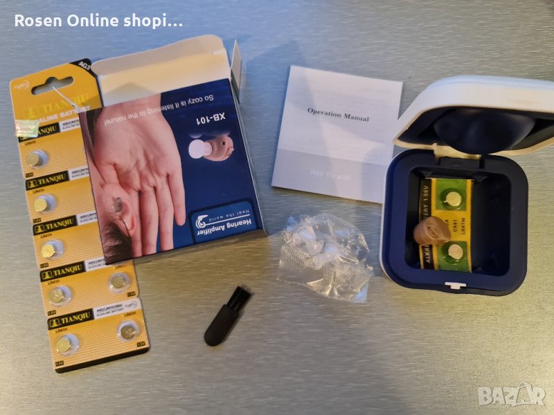 Мини слухов апарат тип слушалка XB-101, 128dB, 3 аксесоара, Бежов + 10 батерии подарък